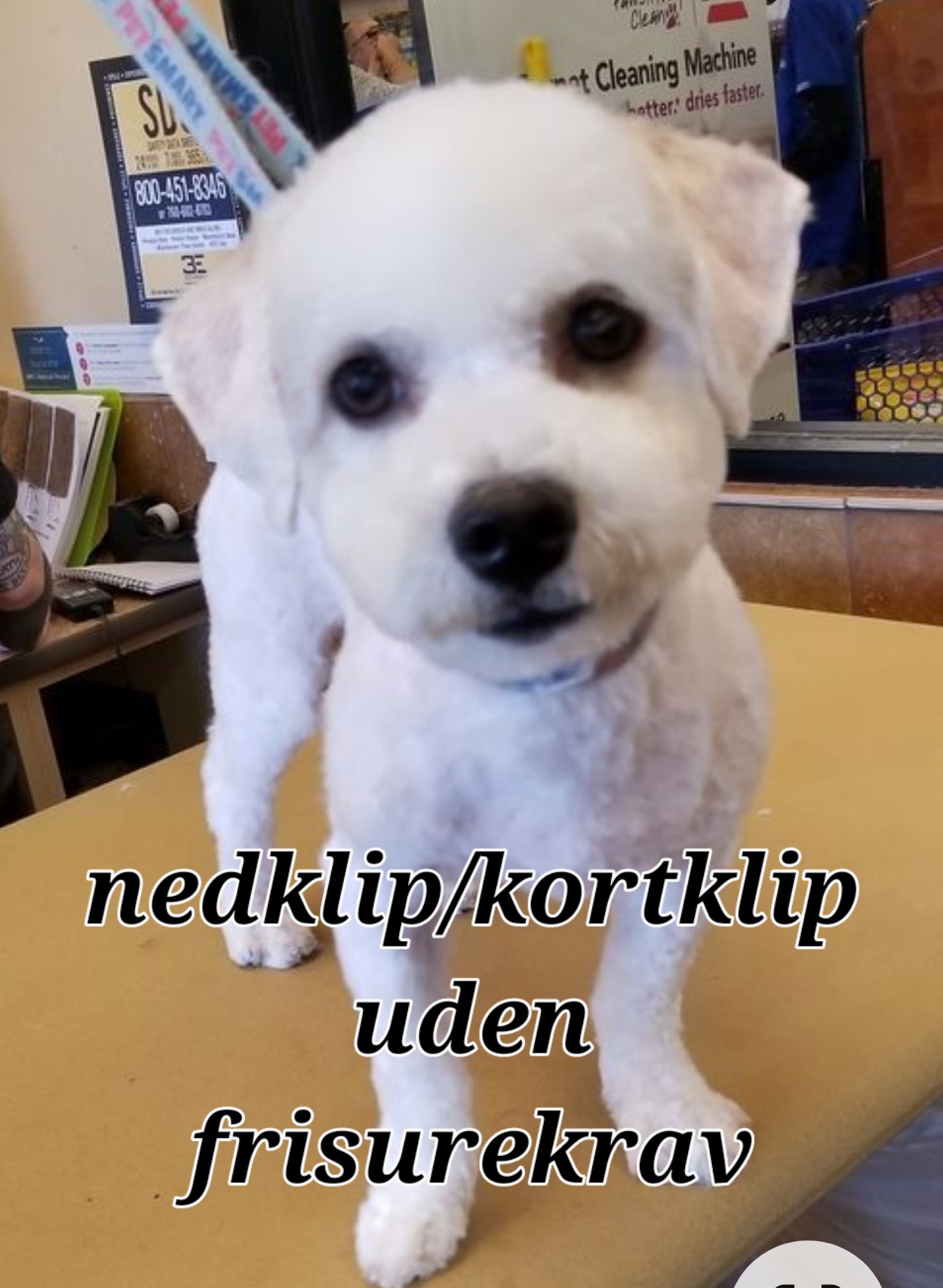 kortere malteserklip el bamseklip kort eller mellem lang fra 850 kr ( skal være filtfri ) skal vaskes i salonen incl klør og øre pris efter str og pelstykkelse